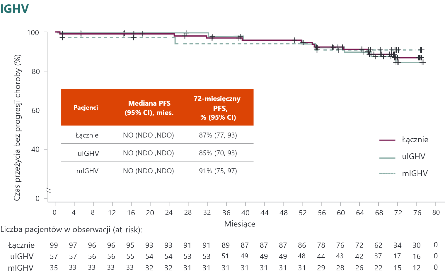 Odsetek PFS u pacjentów leczonych A z uIGHV był zgodny z odsetkiem PFS w populacji leczonej A z mIGHV.