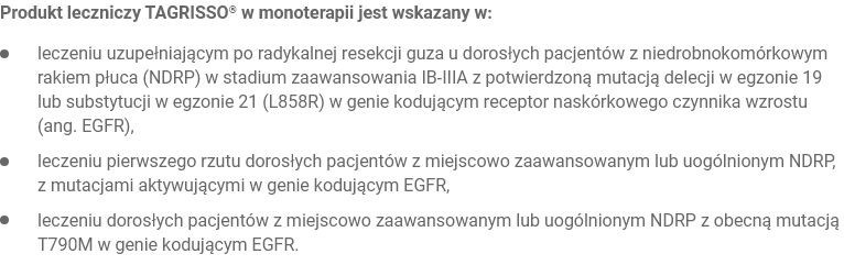 Należy zapoznać się w całości z Charakterystyką Produktu Leczniczego TAGRISSO®, w tym z ulotką dla pacjenta.
