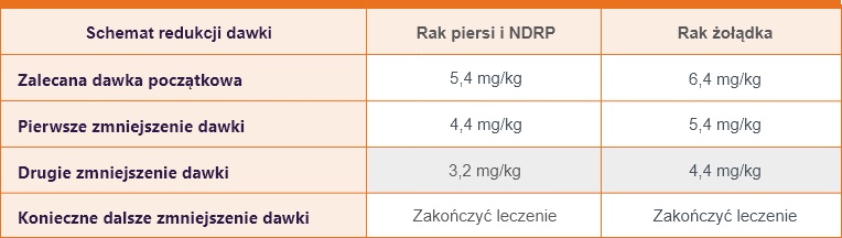 Zalecane zmniejszenie dawki produktu leczniczego Enhertu® w przypadku działań niepożądanych1