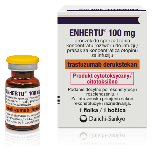 Aby zapobiec błędom w stosowaniu leku, należy sprawdzić etykiety fiolki, aby upewnić się, że lekiem przygotowywanym i podawanym jest Enhertu®, a nie trastuzumab lub trastuzumab emtanzyna.1