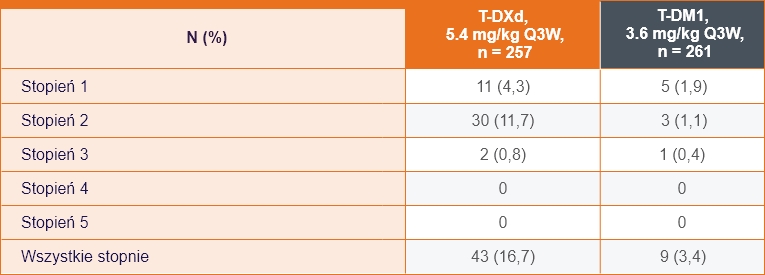 Stopnie według kryteriów NCI-CTCAE (National Cancer Institute Common Terminology Criteria for Adverse Events)8