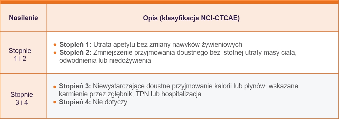 Kryteria klasyfikacji toksyczności i częstość występowania zmniejszonego apetytu1