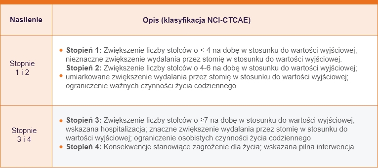 Kryteria klasyfikacji toksyczności i częstość występowania biegunki1