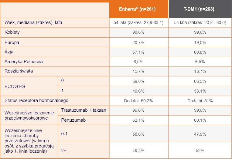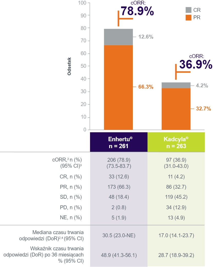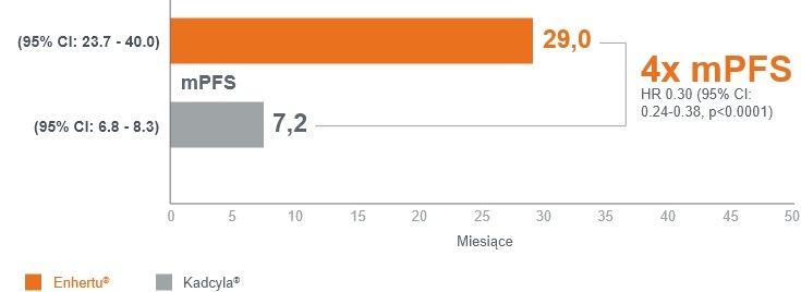 >2 lat mediana czasu wolnego od progresji (mPFS) w ocenie badacza w grupie Enhertu®1,4